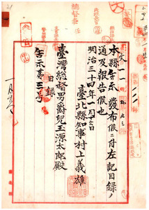 台北縣告示第三號〔杉橋新次郎、川口房吉、樋口歌吉、土井定次郎、俵本熊吉、閑林慶次郎、渡部柳吉〕本島在住禁止