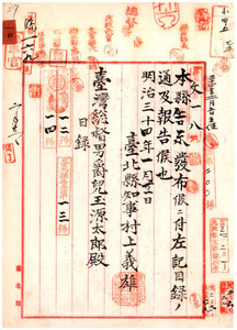 一〇 第十三号 阿片烟膏請売ノ陳樹・楊樹・曽福源・陳岩・王阿保・林日春・黄郷歯 ・高市蚶・呉敏豁阿片烟膏請売営業特許