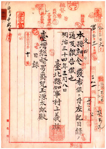 二一 第十号 台北県弁務署管内地方税調査委員定員改正