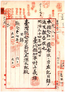 四一 第六十号 阿片烟膏請売ノ張伝・王朝宗・荘佑・張雲仁・蔡君印・謝慶瑞・陳宗 旺・荘清阿・朱淵泉・彭逢阿片営業特許