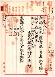 台北縣告示第七十二號〔明治三十二年四月告示第二十六號〕公學校名稱位置〔設置區域中改正〕