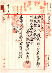 台北縣告示第九十六號〔山梨縣〕小學校教員退隱料等〔遺族扶助料〕ニ關スル件
