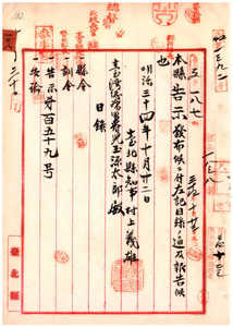 台北縣告示第百五十九號石川定次外數名本島在住禁止