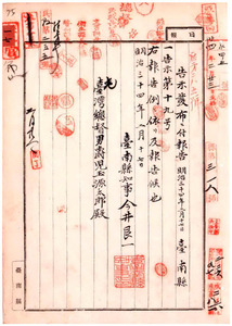 台南縣告示第十九號〔豚羅斯疫發生ニ付〕沖繩縣ニ於テ豚ノ出入〔往來及其生肉、生骨、其他病毒傳播ノ疑アリト認ムル物品ノ運搬〕停止