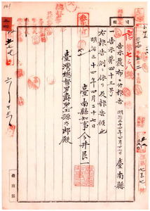 台南縣告示第四十三號〔ペスト蔓延ニ付檢疫部出張所ヲ關帝廟弁務支署內ニ置キ〕檢疫事務開始ノ件