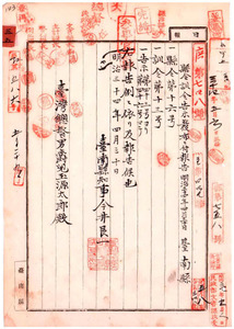 台南縣訓令第十三號〔經常予算定額ヨリ支弁スヘキ廳舍、校舍、官舍並ニ附屬建物ノ修繕、模樣換等ニテ〕一簾百円以上ノ工事ハ認可ヲ要ス