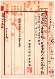 宜蘭廳廳令第十三號蕃產物交換〔所以外ニ於テ蕃人ト直接ニ物品ヲ賣買、交換、授受スルコトヲ禁止〕