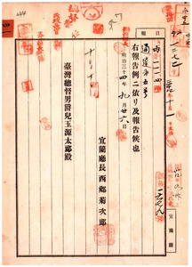 宜蘭廳通達第五號〔課長事故アルトキノ〕事務代理ノ件