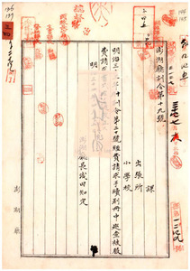 澎湖廳訓令第十九號〔明治三十三年十月訓令第二十號〕經費請求手續中改正