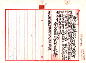 七 池清洋外四名藍九・藍鳥定・潘天信・陳斉基隆社藔島砲台敷地トシテ土地寄付認可