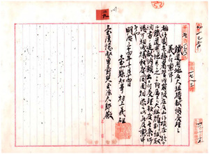 二九 劉阿石外十七名義民嘗・陳阿番・彭伝・彭漢・張新進・蕭阿秀・陳石・張伝喜・ 彭桂・蔡伝・林阿梨・周炳然・陳阿銭・高三和・周阿登・江呵相・黄大和ヨリ崩 坡庄鉄道用地トシテ土地寄付認可