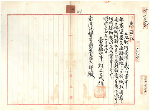 基隆堡胡王愛外七名ヨリ要塞堡壘交通路敷地トシテ土地寄付認可