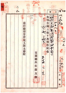 七 宜蘭庁明治三四年 訓令第四十号 三十三年訓令第七十七号中改正ノ件