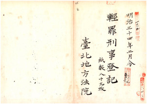 明治三十四年二月分輕罪刑事登記(台北地方法院新竹出張所)