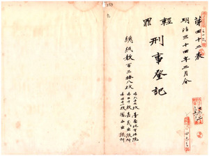 九 明治三四年二月分 軽罪刑事登記台南地方法院 六七枚同院嘉義出張所 三〇枚同院鳳山出張所 四一枚