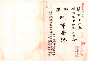 明治三十四年四月分輕罪刑事登記(台南地方法院、同院嘉義出張所、同院鳳山出張所)
