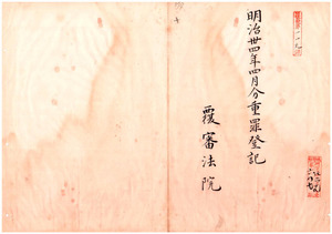 一〇 明治三四年四月分 重罪登記覆審法院 台北地方法院 七枚同院新竹出張所 二枚台中地方法院 三枚台南地方法院 一枚同院嘉義出張所 一枚同院鳳山出張所 七枚