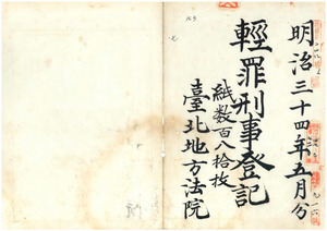 明治三十四年五月分輕罪刑事登記(台北地方法院)