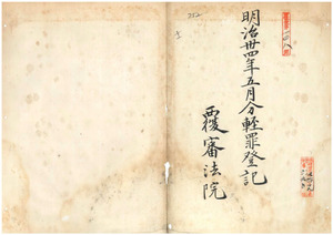 明治三十四年五月分輕罪登記(覆審法院台北地方法院、同院新竹出張所、台中地方法院、台南地方法院、同院嘉義出張所、同院鳳山出張所)