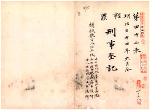 明治三十四年六月分輕罪刑事登記(台南地方法院、同院嘉義出張所、同院鳳山出張所)
