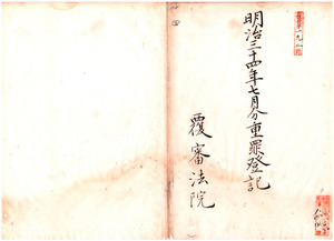 四 明治三四年七月分 重罪登記覆審法院 台北地方法院 六枚同院宜蘭出張所 一枚台中地方法院 二枚台南地方法院 四枚同院嘉義出張所 三枚