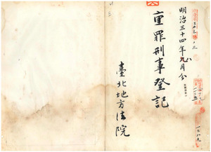 三 明治三四年八月分 重罪刑事登記台北地方法院宜蘭出張所 三枚