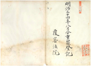 五 明治三四年八月分 重罪登記覆審法院 台北地方法院 一枚同院宜蘭出張所 一枚台中地方法院 六枚台南地方法院嘉義出張所 一枚同院鳳山出張所 二枚