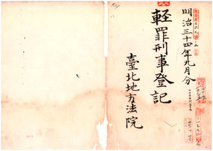 明治三十四年九月分輕罪刑事登記(台北地方法院、同院新竹出張所)