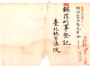 明治三十四年九月分輕罪刑事登記(台北地方法院宜蘭出張所)