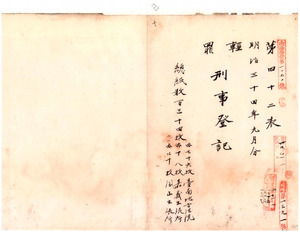 一〇 明治三四年九月分 軽罪刑事登記台南地方法院 七六枚同院嘉義出張所 一八枚同院鳳山出張所 四〇枚