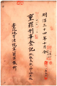 明治三十四年十月分重罪刑事登記(台北地方法院宜蘭出張所)