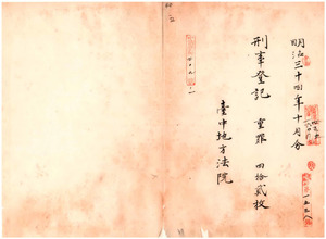 明治三十四年十月分重罪刑事登記(台中地方法院)