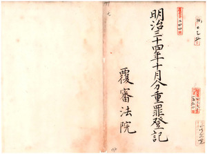 明治三十四年十月分重罪登記(覆審法院台北地方法院、台中地方法院、台南地方法院、同院嘉義出張所、同院鳳山出張所)