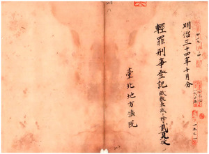 明治三十四年十月分輕罪刑事登記(台北地方法院)