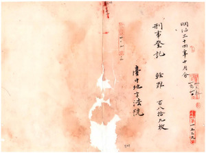 一一 明治三四年一〇月分 軽罪刑事登記[本紙破損]台南地方法院 七五枚同院嘉義出張所 三三枚同院鳳山出張所 四二枚