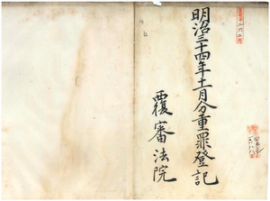 五 明治三四年一一月分 重罪登記覆審法院 台北地方法院 四枚同院新竹出張所 一枚同院宜蘭出張所 三枚台中地方法院 七枚台南地方法院 四枚同院嘉義出張所 四枚同院鳳山出張所 一三枚
