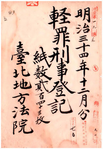 明治三十四年十二月分輕罪刑事登記(台北地方法院)