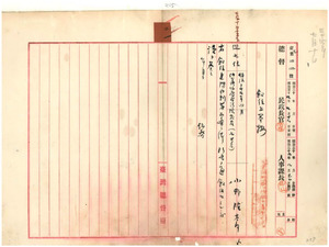 二一 法院判官小野隆太郎外九名総督秘書官横沢次郎・総督府技師田代安定・総督府事務 官浦太郎・台南県警部長佐藤友熊・総督府医院医員橋本源太郎・台中県弁務署長小 柳重道・総督府技師鳥井静治・総督府鉄道部技師渡部英太郎・打狗税関長兼安平税 関長宮尾舜治叙位上奏ニ関スル件