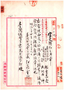 臺灣總督府通信書記稻葉忠吉外一名輔勤