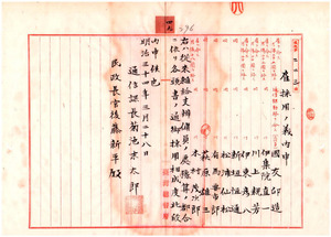 四九 傭国友卯造外六名同ノ伊集院直一・川上親芳・伊東彦八・新垣恒通・有馬要市郎、 元傭木村茂次郎雇ヲ命シ通信課勤務ヲ命ス