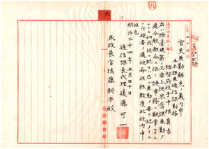 六 民政部土木課勤務兼民政部通信課勤務総督府技手中根真吉通信課兼務ヲ免シ民政部 土木課勤務ヲ命ス