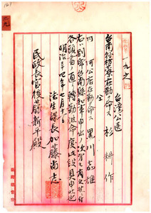 三九 台湾公医杉耕作台南県枋藔在勤ヲ命シ台湾公医黒川嘉雄台南県阿公店在勤ヲ命ス