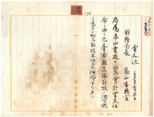 三七 総督府属赤山幸友物品会計官吏任命ト共ニ元台南県直接取扱ノ地方税支弁ニ属スル 物品取扱主任ヲ命ス