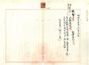 四 元台北県知事官房勤務台北県通訳児五瑚一郎台北庁通訳ニ、元台北県知事官房文書 課勤務台北県属中瀬秀二郎ヲ台北庁属ニ、元台南県警察部警務課勤務台南県警部大 山綱岳、元台北県警察部衛生課勤務台北県警部ノ原口健太郎・岡本次雄、元崔崢弁 務支署勤務台北県警部補中間光太郎ヲ台北庁警部ニ、元台北県通訳兼警部山名正真 ヲ台北庁通訳兼警部ニ任ス