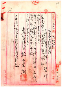 一九 台南地方法院通訳法院通訳沢谷仙太郎台南地方法院鳳山出張所詰ヲ解ク (1901/09/07);上島巌太台中地方法院雇ヲ命ス(1901/09/12);淡水税関嘱託布施謙太郎増給 (1901/09/19);浅沼実淡水税関嘱託ヲ命ス(1901/08/31)