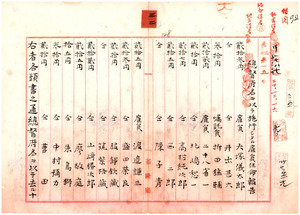 三二 大塚儀太郎外数名井出甚六・二十八省一・北島恕一・高村純次郎・西二郎・陳子青 ・渡辺謙三・盛田栄良・服部欽蔵・筑紫格蔵・山崎勝次郎・廖敬庭・朱烏獅・中村 弥力・曹田ニ基隆庁雇ヲ命シ折田猛輔ヲ基隆庁嘱託ニ命ス