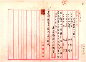 三五 周純臣外数名曽栄祥・荘塗・陳忠修蕃薯藔庁参事ニ、増子岩根・藤崎新三郎・蒋耀 卿・葉清如・陳忠貞ヲ蕃薯藔庁雇ニ採用