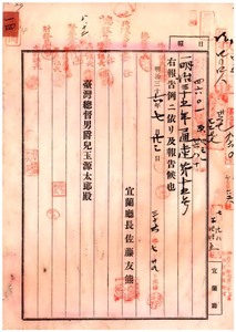 一四 第一五号 明治三五年六月通達第十三号宜蘭庁判任各官定員中警部補人数改正