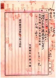 明治三十五年六月通達第一三號宜蘭廳各課各支廳判任官分配定員中警部補定員改正(宜蘭廳通達第一六號)