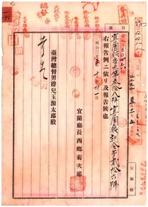 明治三十四年十一月告示第五九號警察官吏派出所名稱位置及管轄區域中廢設(宜蘭廳告示第三八號)